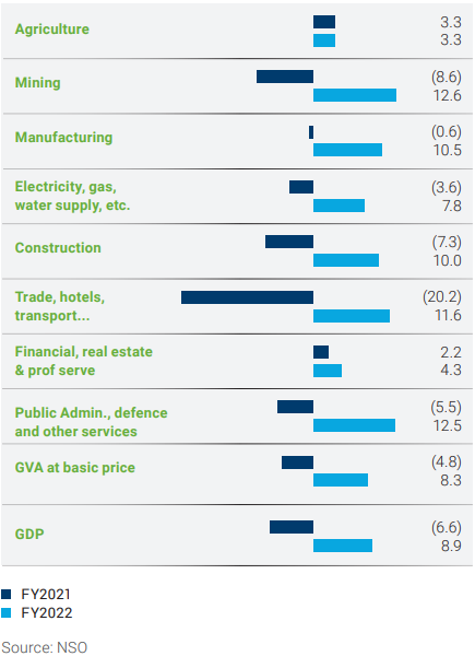 After the downslide in 2020, the Indian economy recovered resiliently in 2021, supported by the largest vaccination drive in the world. Unlike in other economies, India’s supplyside reforms in response to the pandemic not only kept inflation under control but also facilitated long-term growth prospects. Compared to a contraction of 6.6% in FY2021, the Indian economy is expected to grow by 8.9% in FY2022, as per the Second Advance Estimates of National Income of the National Statistical Office (NSO) of India.